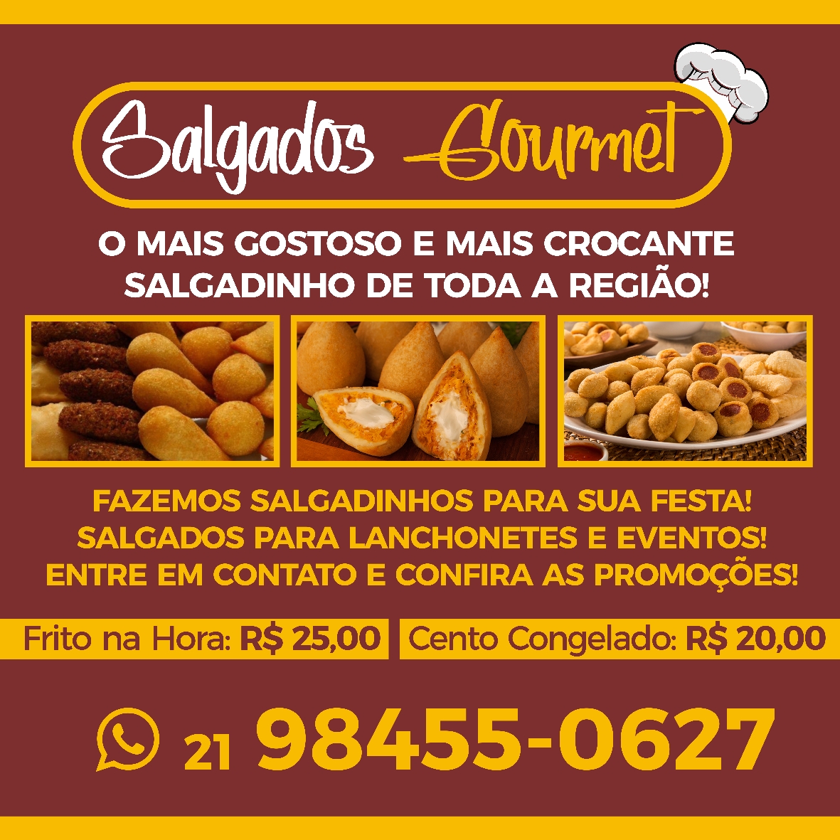 Salgados Gourmet trabalha com serviço de qualidade a seus clientes, com apenas 6 meses no mercado, vendemos para festas,buffets, eventos....